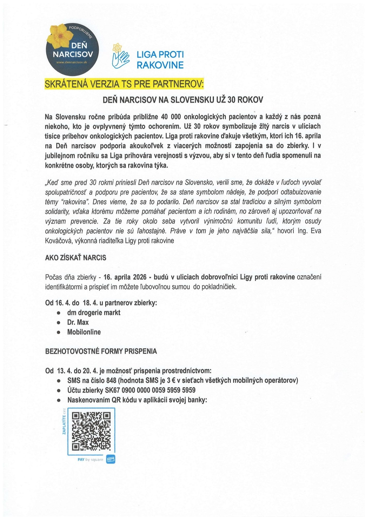 • Zbierka deň narcisov 16.4.2026