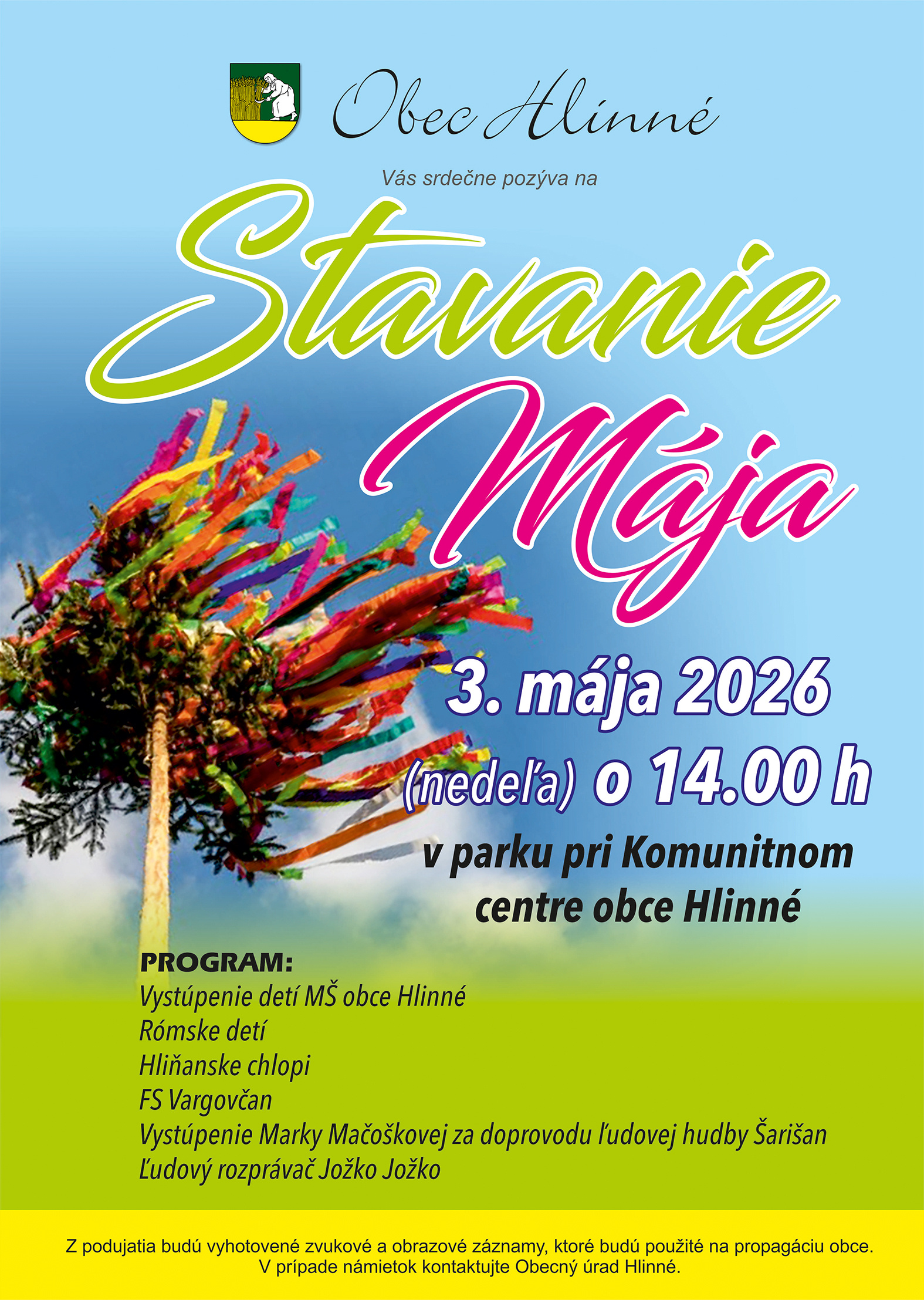 Obec Hlinne Vás srdečne pozýva na slávnosť  Stavanie mája.