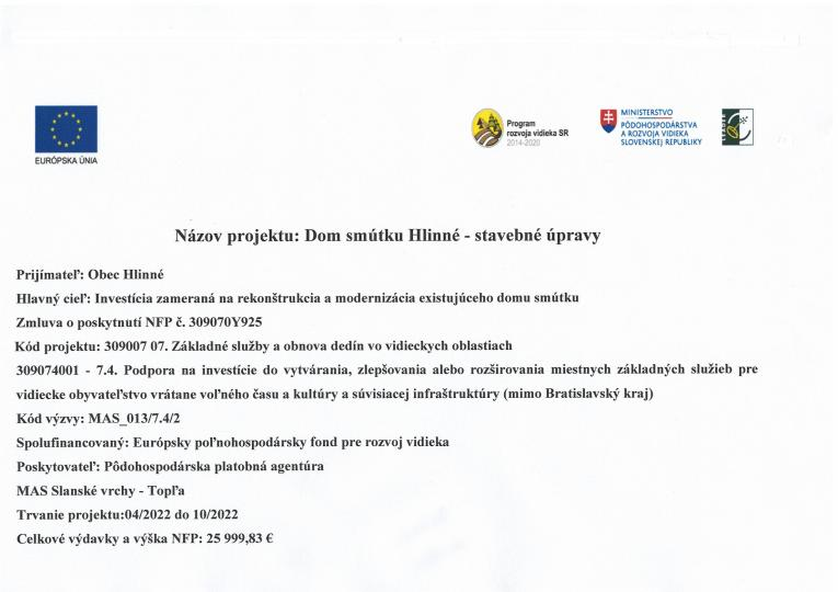 Zvýšenie účinnosti budovy Obecného úradu a kultúrneho domu v obci Hlinné