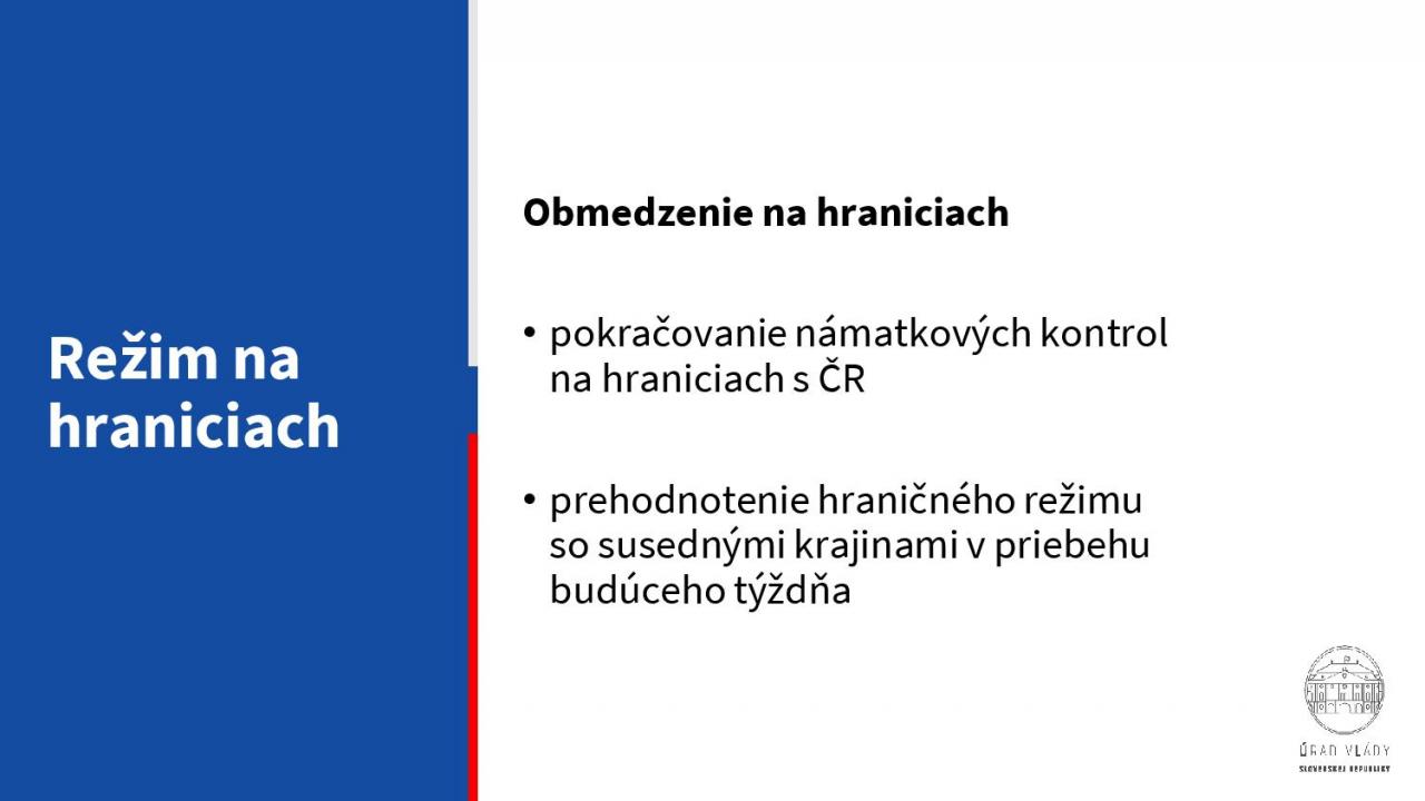 - prehodnotenie hraničného režimu so susednými krajinami v priebehu budúceho týždňa