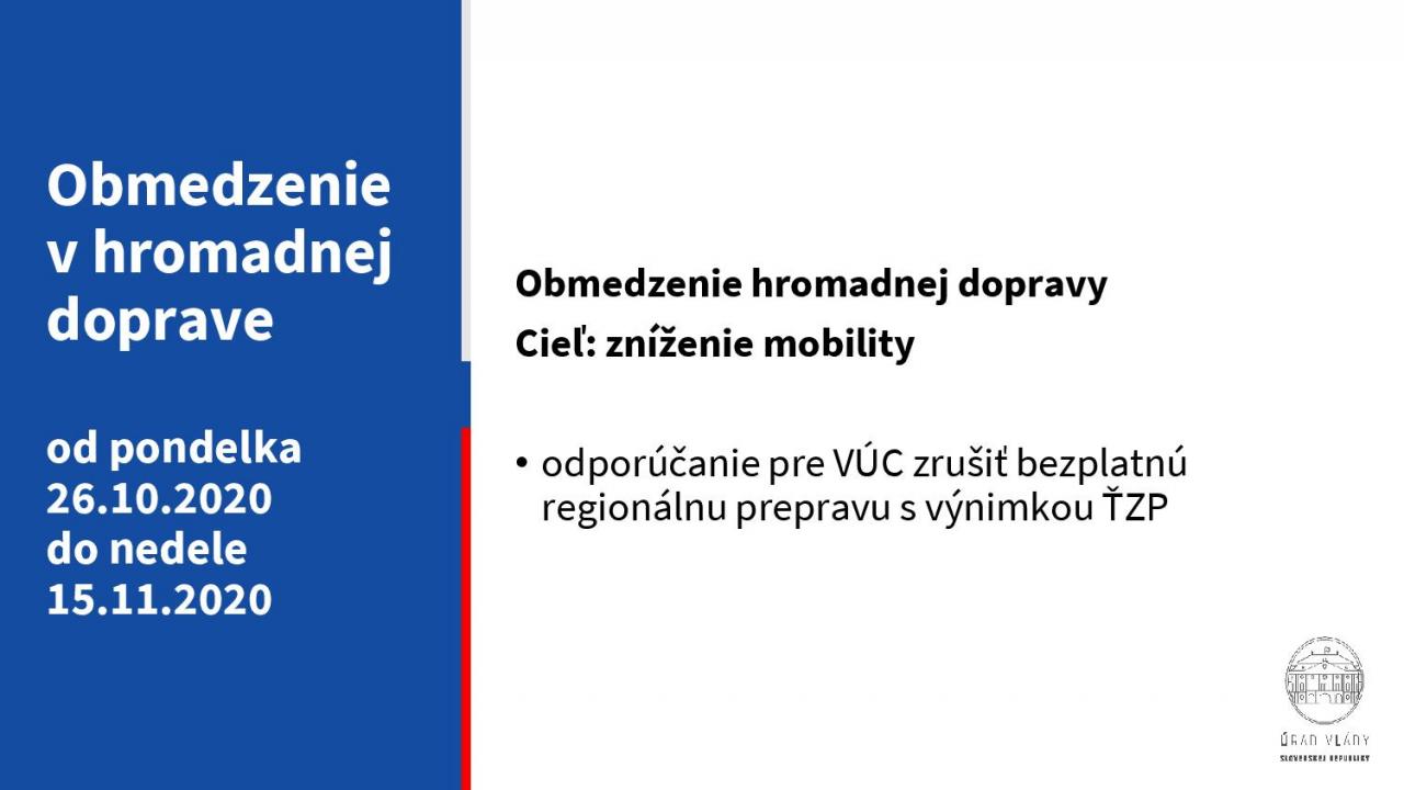 Obmedzenie v hromadnej doprave od pondelka 26. októbra 2020 do nedele 15. novembra 2020