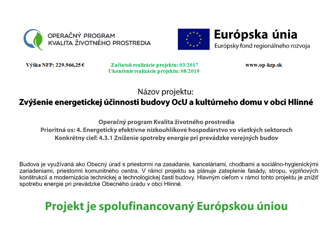 Zvýšenie účinnosti budovy Obecného úradu a kultúrneho domu v obci Hlinné